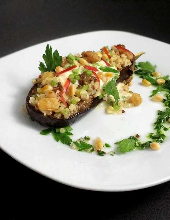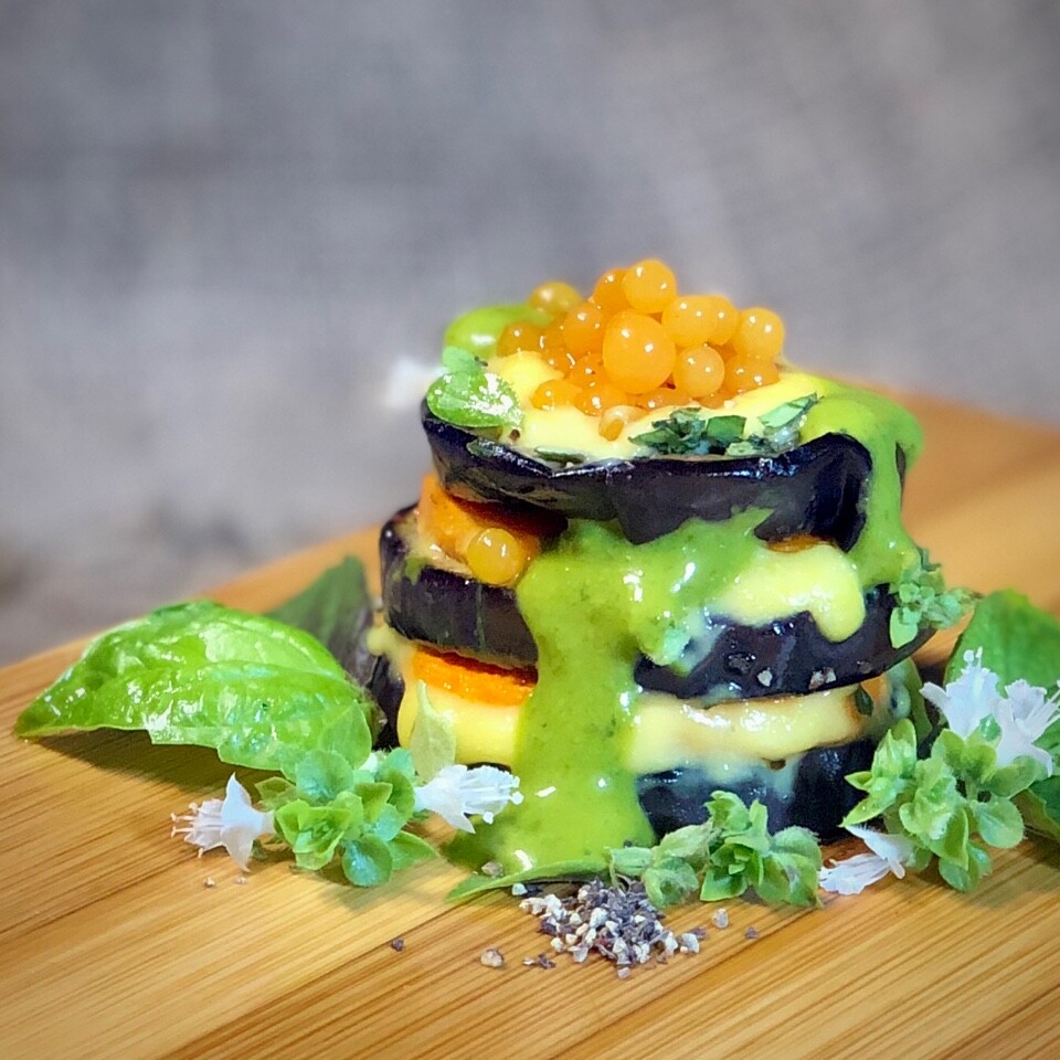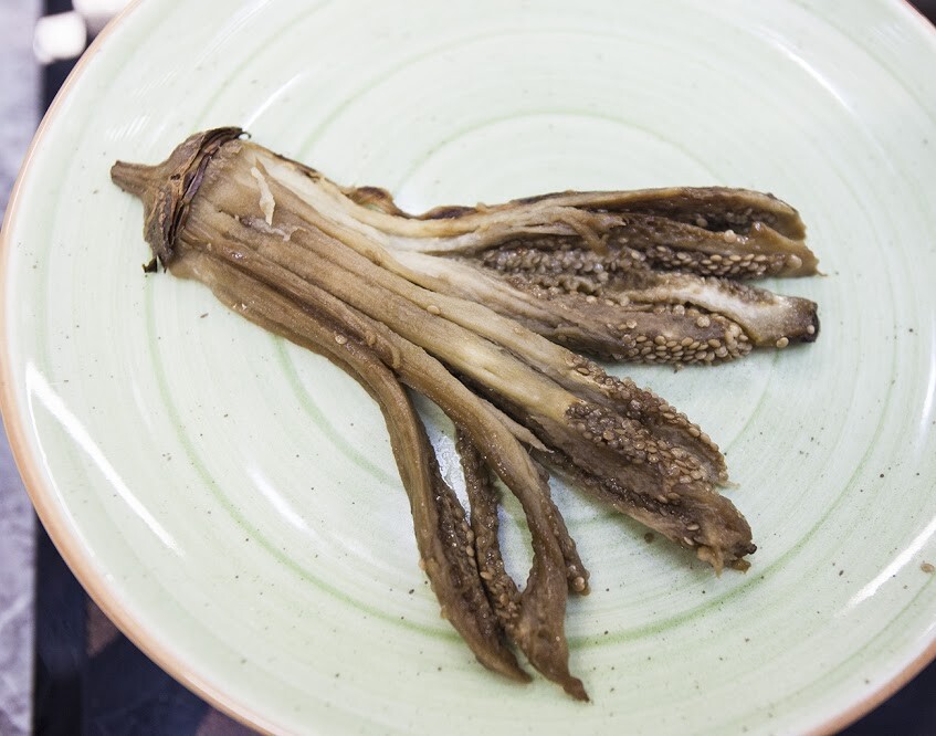 Заметьте, ни один баклажан не был банально обжарен). Мы сделали так, что губчатая структура баклажана не была пропитана маслом, как это часто бывает.