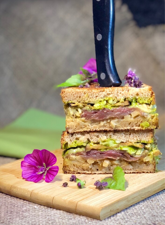 На основную подачу сделали интерпретацию американской классики – Рубен сэндвич и тартар с баклажанами, авокадо и мраморной говядиной.