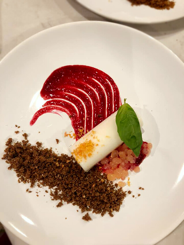 Заглавное блюдо — богатый Суп вонтон, традиционный для новогоднего стола в Азии, но адаптированный и осовремененный. В нём трёхцветные вонтоны из теста глубокого крашения (corrozione), а в начинке нежная рыбой и сочные креветки с имбирём и другими пряностями. И фантастический рыбный бульон по хитрой технологии. И тоже всё на заготовках — спокойно и без суеты.