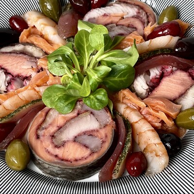 Я обожаю делать праздники, потому давно перешла к более узким тематическим меню, например: Птичий стол, Свинина с креветками, Баклажанная кругосветка или вот Морской стол.