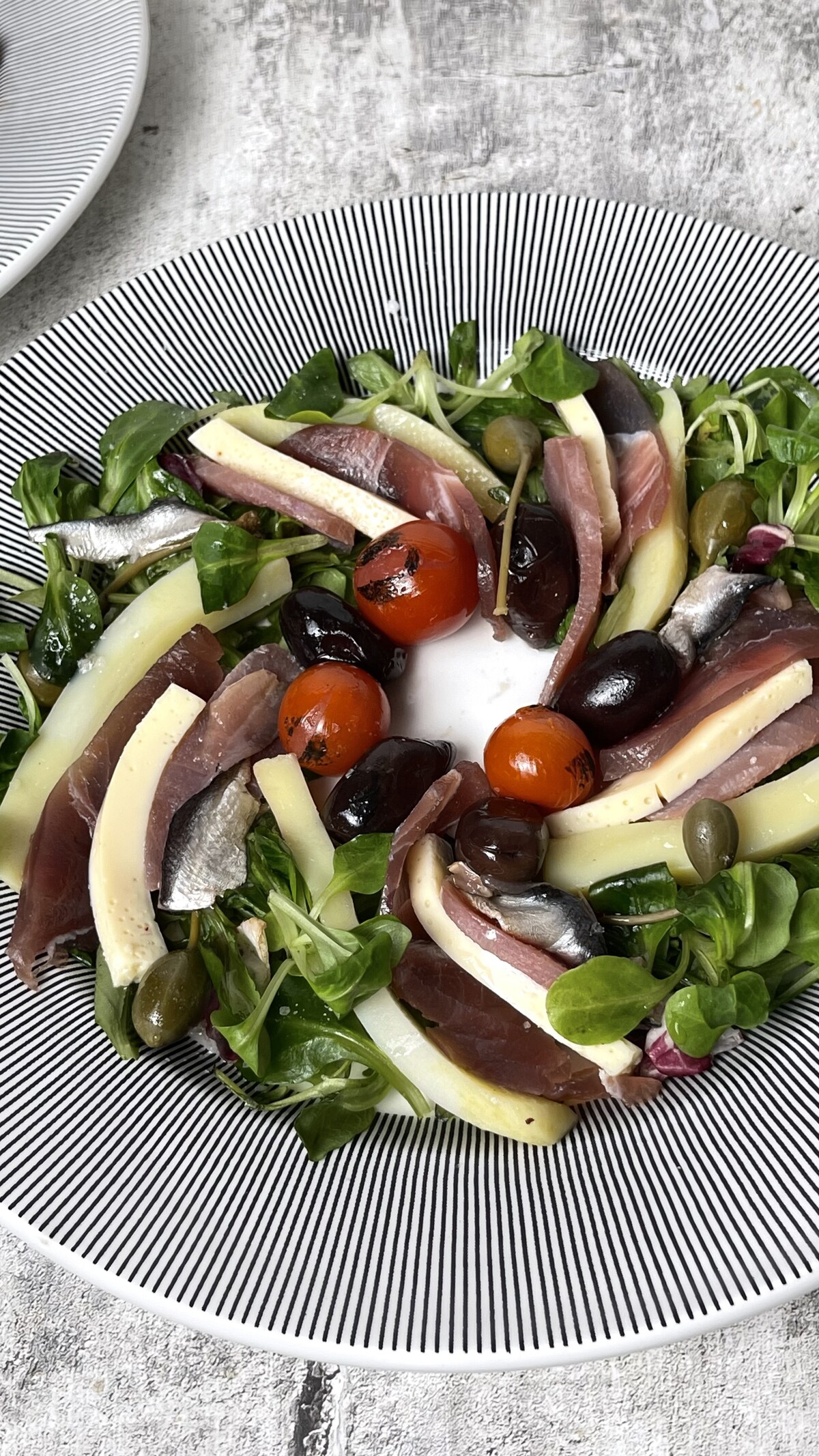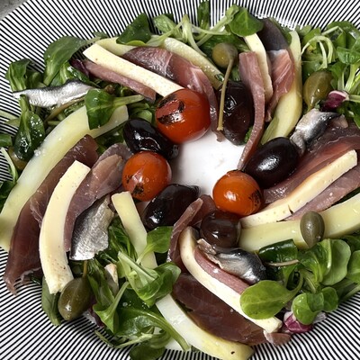 - Нисуаз с двойным тунцом и кизиловыми оливками