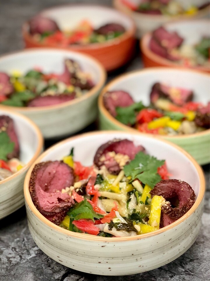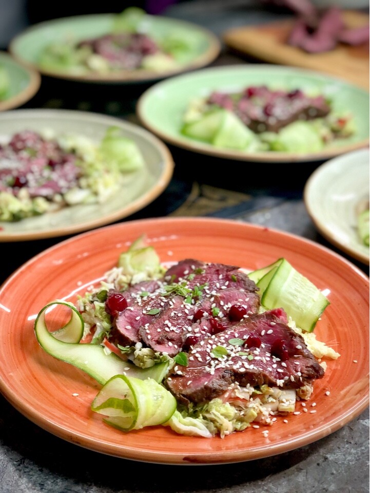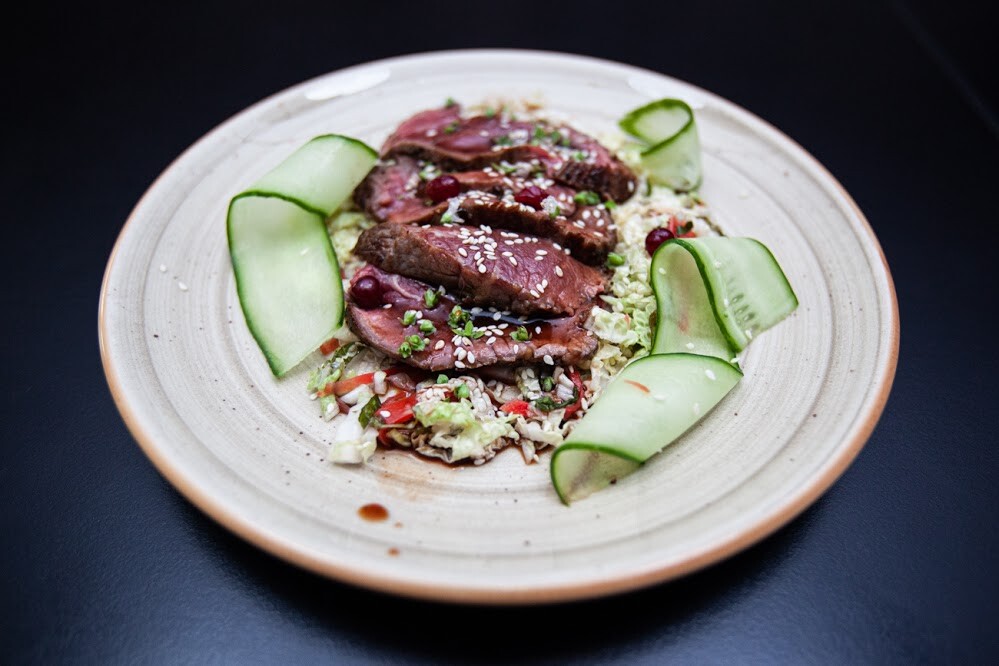 - английский Ростбиф докрутили смесью китайских пряностей к тройному имбирному Стир-фраю,