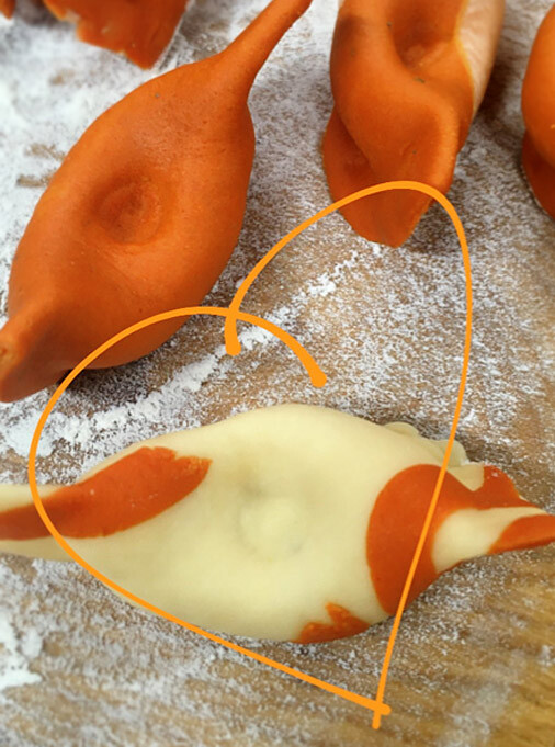 - подробное описание и пошаговые фото формовки милых Башмачков-Скарпиноччи, земляков известного героя комедии дель-арте Труффальдино. Они с фантастически простой и необычной (для нас) начинкой,